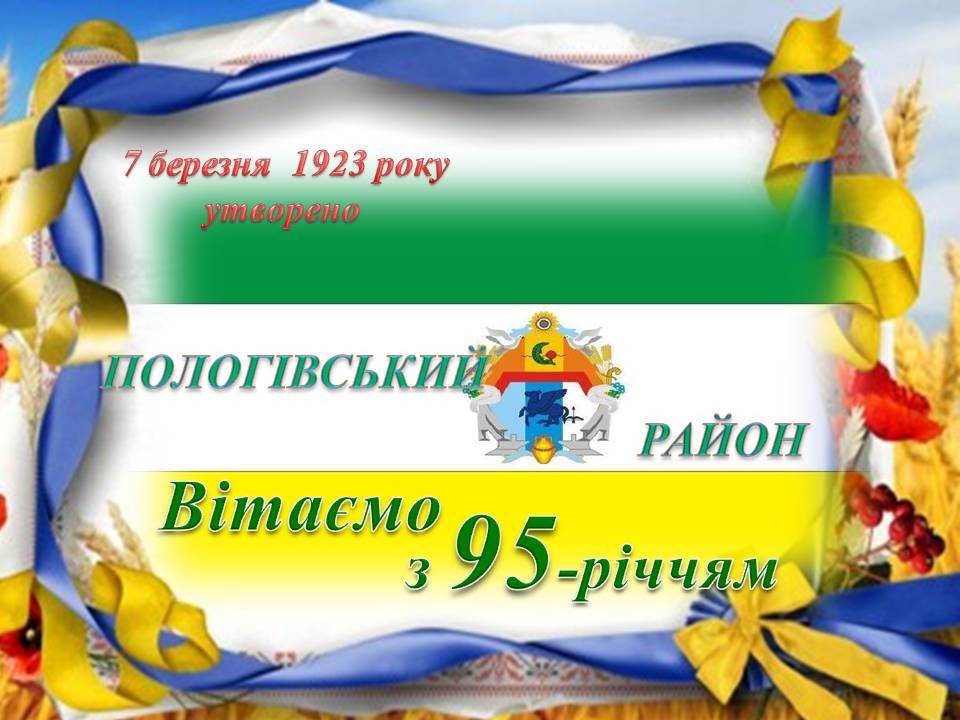 Шановні жителі Пологівського району! Щиро вітаю вас з 95-річчям Пологівського району. За роки становлення наш район пройшов складний шлях. На цьому нелегкому шляху були і втрати, і великі досягнення та здобутки. Нині в районі зосереджений великий промисловий та аграрний потенціал, що є запорукою сталого і динамічного соціального–економічного розвитку.…